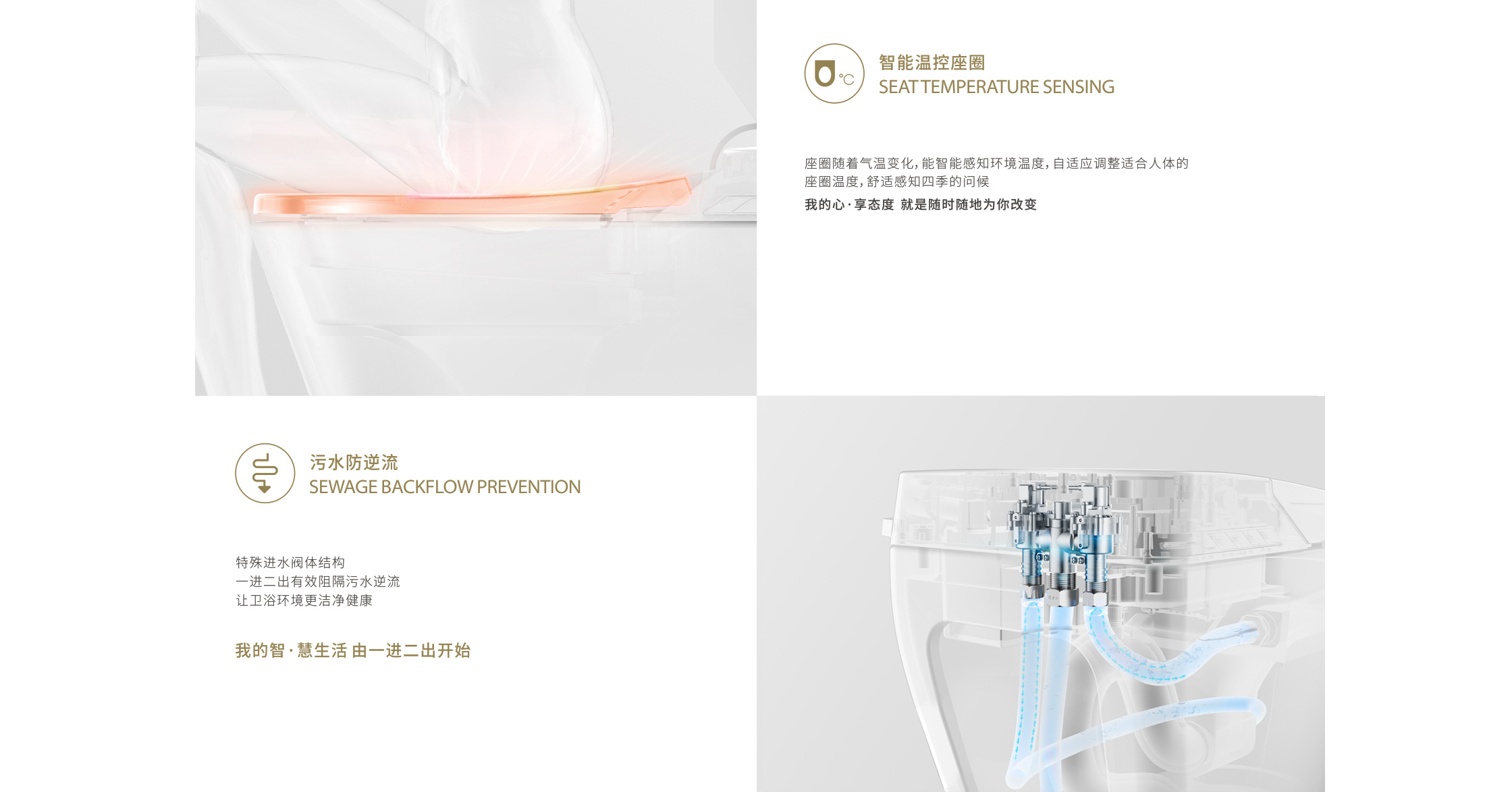低音零水压、微波感应、紫外杀菌、红外感应、自动除臭、弧形清洗器、3D曲面座圈、活水净化、智能温控座圈、污水防逆流、全自动清洗、按摩SPA、座圈低温防烫伤、儿童功能